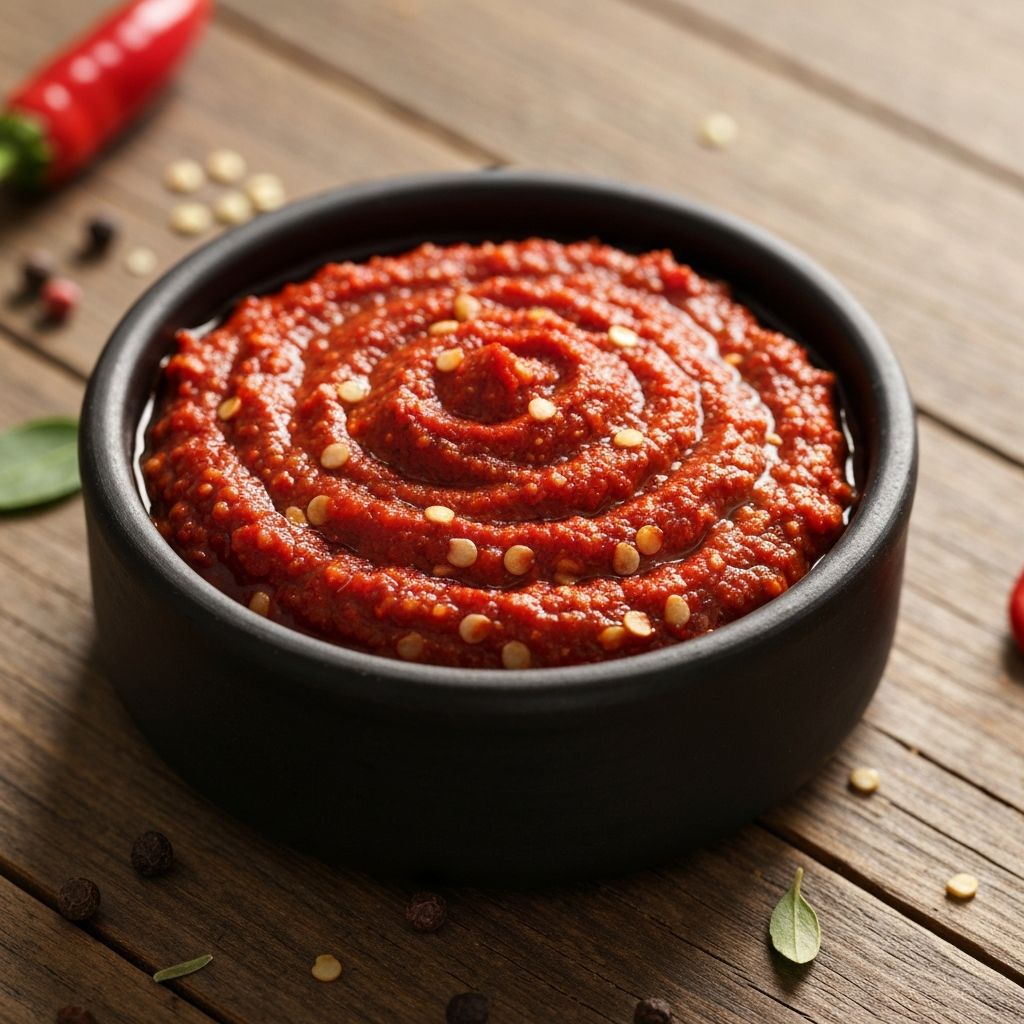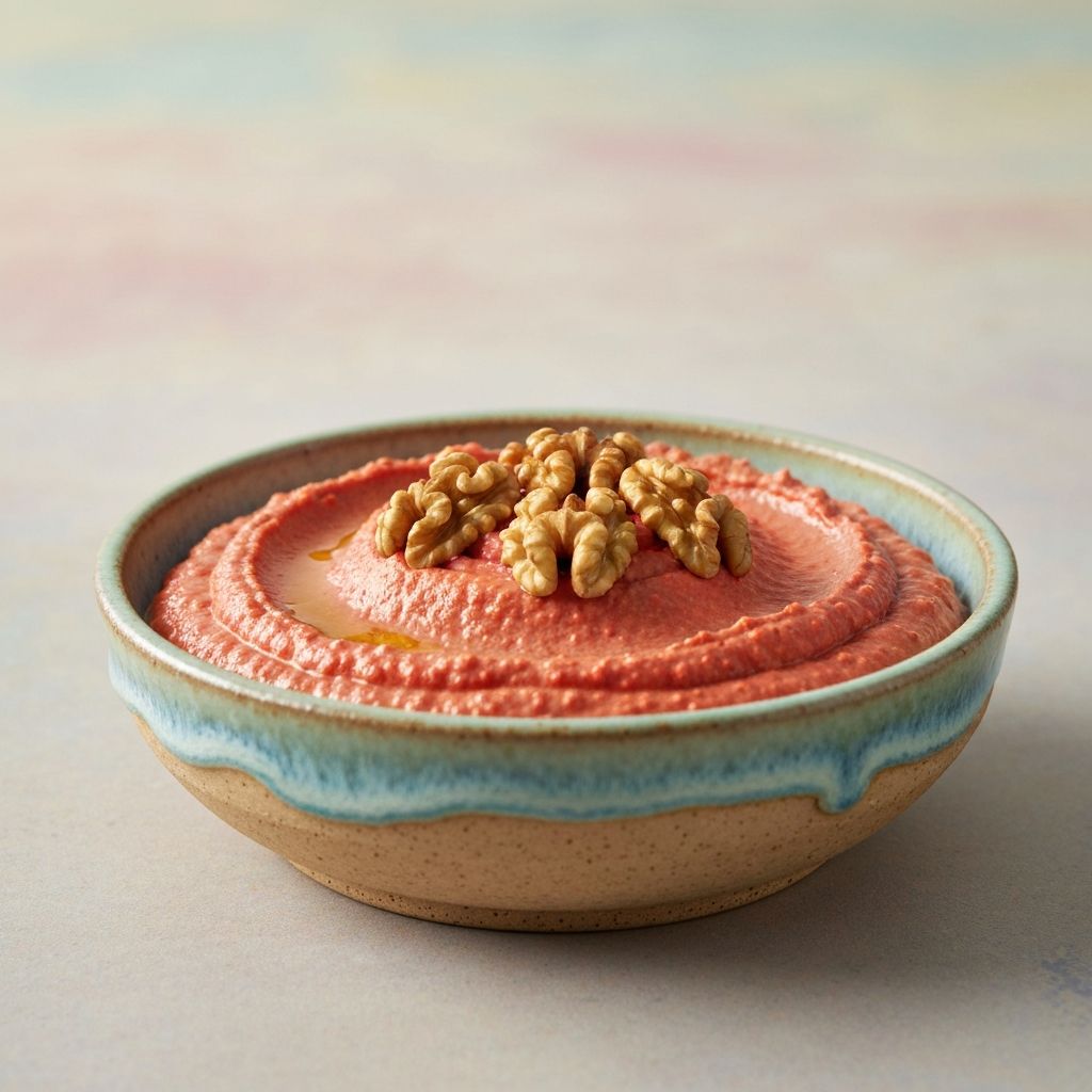 Halep'ten gelen parlak kırmızı biber ve ceviz meze. Kavrulmuş kırmızı biberler, ceviz, nar ekşisi ve baharat karışımı yapılır, tatlı ve tatlı-ekşi bir tat elde edilir.