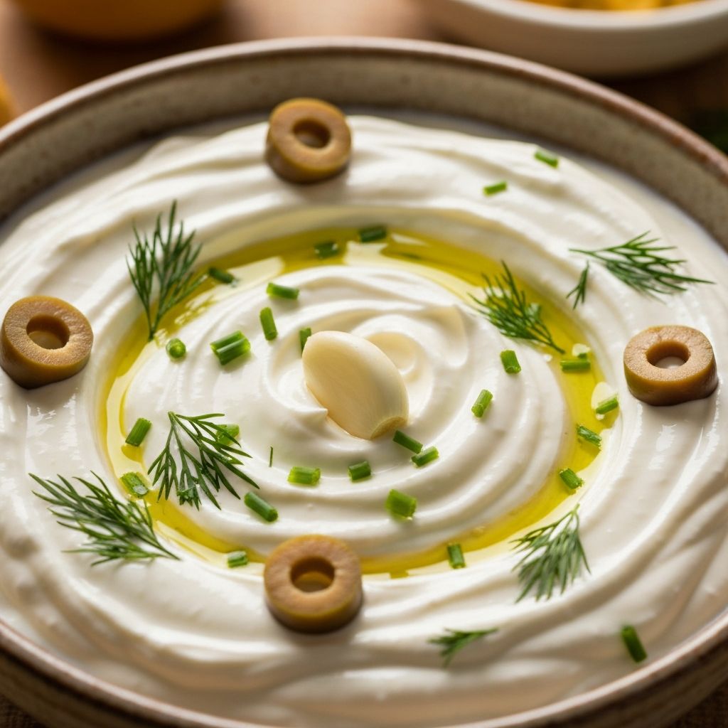 Feta peyniri, taze dill, nane ve sarımsak ile zenginleştirilmiş kalın bir yoğurt meze. Tatlı ve tuzlu karışımı olan bu meze, sıcak ekmekle veya ızgaralı etlerle birlikte yenir.